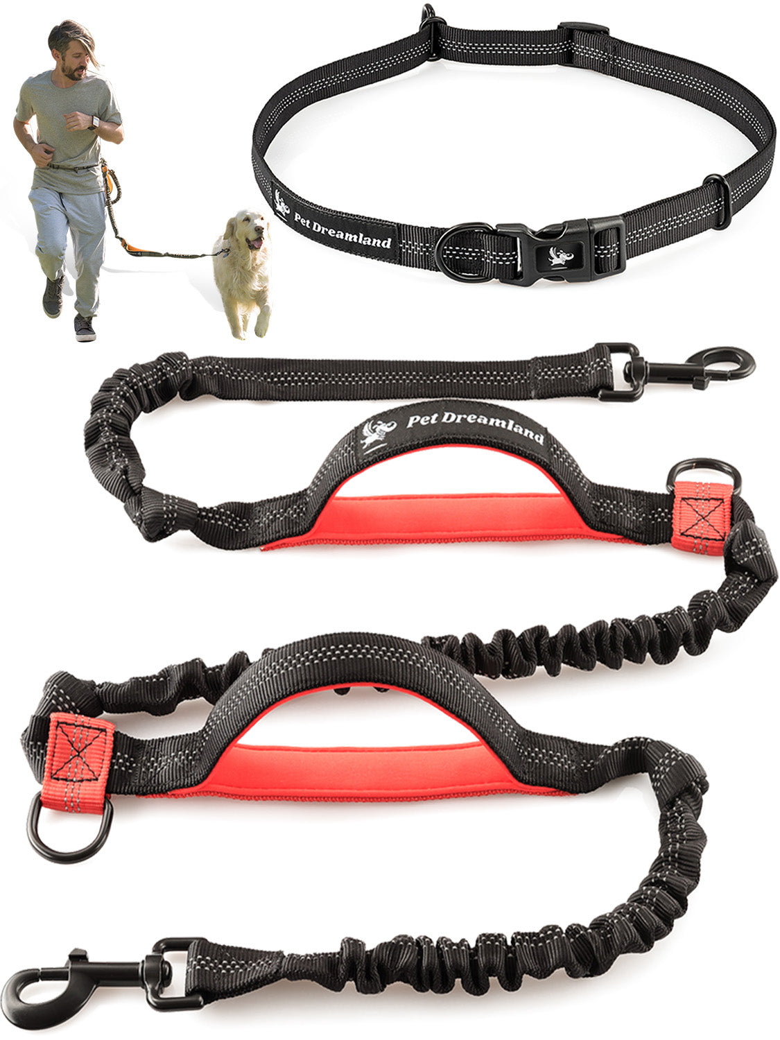 Let me just begin by saying THIS LEASH IS FANTASTIC. I have a very energetic, one-year-old English Shepherd that spent his first year of “walks” off-leash on woods trails and does not understand that pulling on a leash is unacceptable. I recently decided to start training for a half marathon and he is my running buddy so it was time to get a good running leash. We went for the first run today after getting it in the mail and I really like it. It feels quality and I like that there are several lengths that you can make it, depending on where you’re running. The bungy segments absorb much of the force when he does decide to pull, reducing the amount of force on my waist or arm. This leash paired with his new harness that clips in the front made today’s run virtually pull-free!
